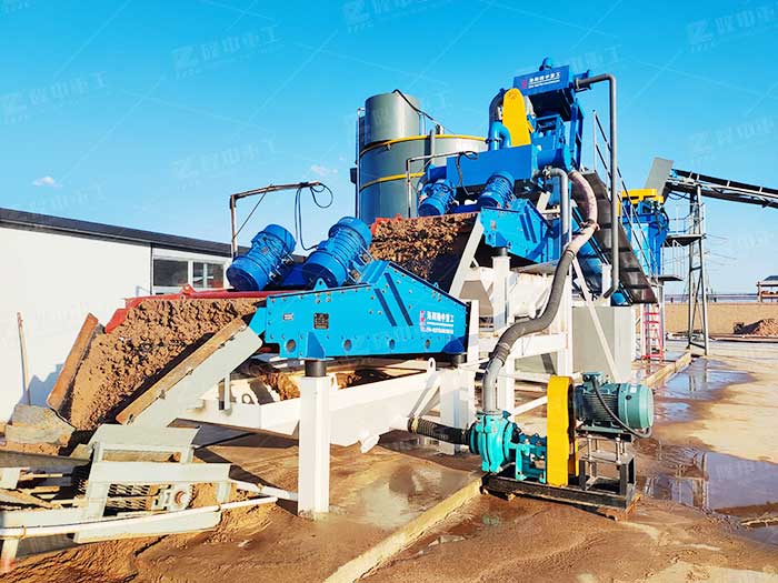 在砂的生產(chǎn)中,精心配置的細(xì)砂回收機(jī)可以實(shí)現(xiàn)細(xì)砂的良好回收。 工作過程如下:真空高壓泵將漿料水混合物輸送到旋風(fēng)分離器,通過離心濃縮的細(xì)砂通過噴砂嘴供給振動(dòng)篩。 當(dāng)振動(dòng)篩使砂脫水時(shí),細(xì)砂可以地與水分分離,從而少量細(xì)砂和泥粉通過返回槽返回洗滌槽。 當(dāng)清洗槽的液位太高時(shí),它通過排放口排出。