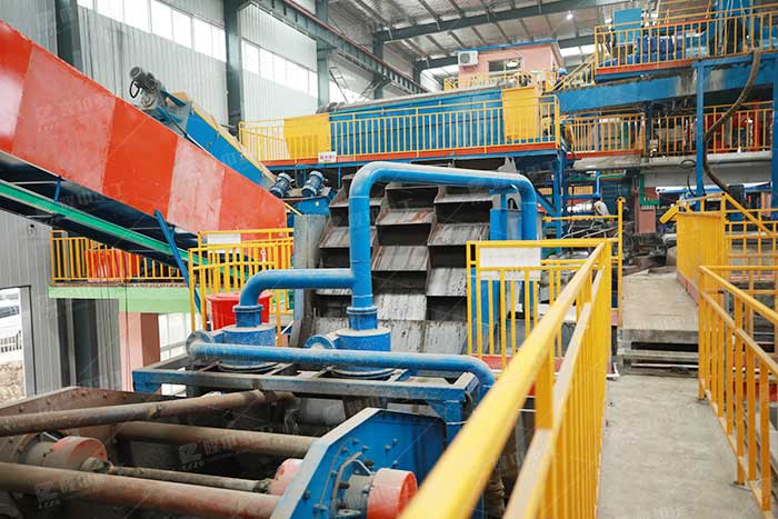 經加工后的爐渣,在跳汰機上再次分離,跳汰網孔徑約為5mm。跳汰過程中需加水。跳汰工序用水量為每噸爐渣用2.0m³